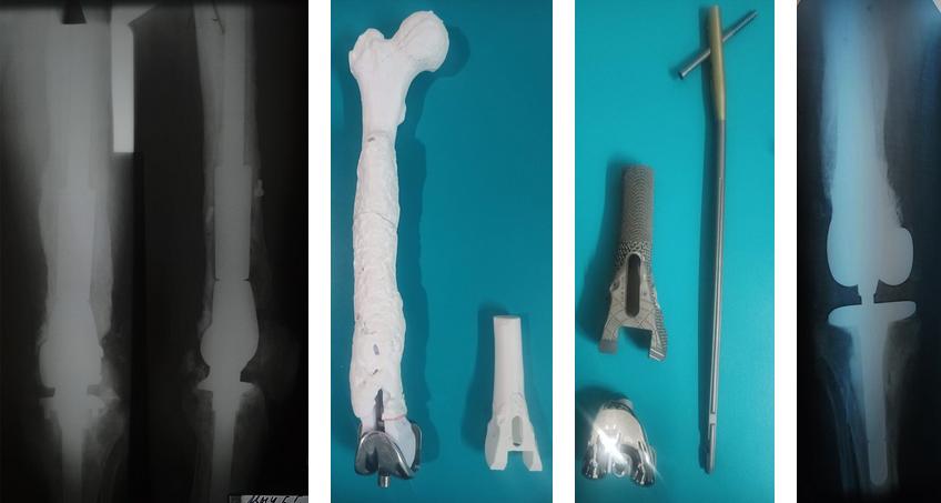 Проектування та виготовлення індивідуальних аугментів для заміщення дефектів суглобів: М, 48р, асептична нестабільність онкологічного ендопротеза . Заміщення дефекту індивідуальним аугментом та ревізійним ендопротезом , фіксація БІС, ПММА
